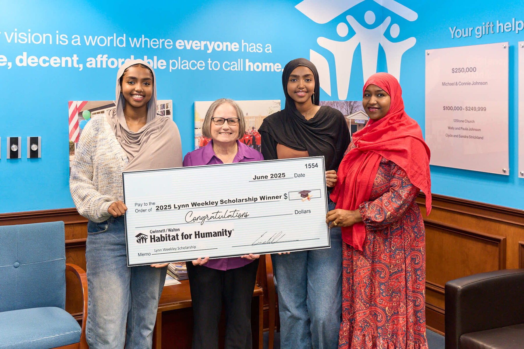 The Lynn Weekley Volunteer College Scholarship is named after our first paid volunteer coordinator, who served our affiliate faithfully for 20 years. The recipients will embody Mrs. Weekley’s dedication to volunteerism and have exhibited actions in keeping with the mission of Gwinnett/Walton Habitat for Humanity.